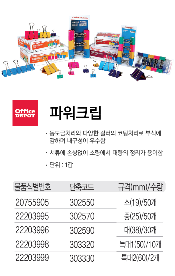 ⓢ파워크립38mm(대/30pcs/OfficeDEPOT)