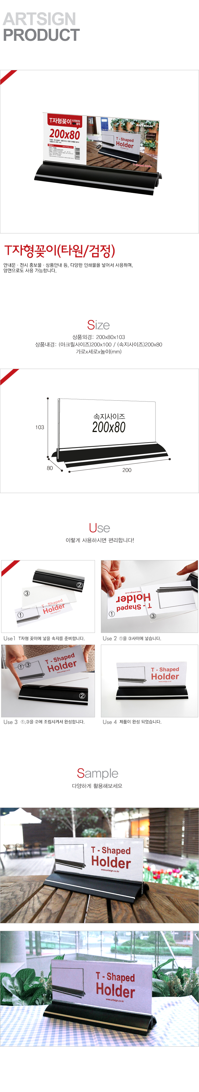 ⓢ[업체별도배송]T자형꽂이(타원받침/블랙)/200*80/아트사인)/TK2008(2469)