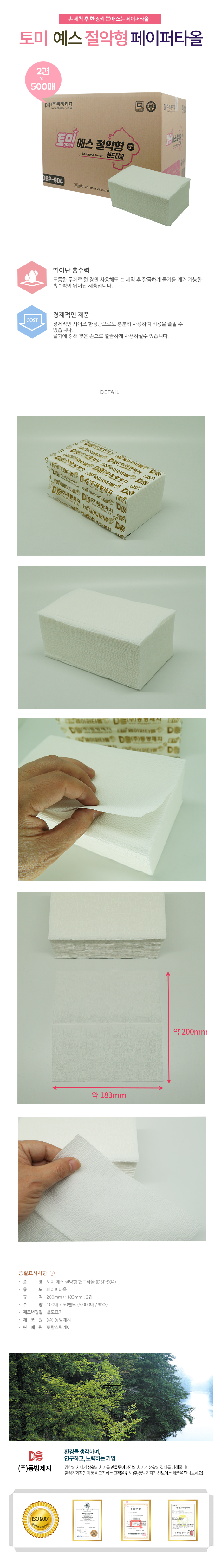 동방제지 토미 예스 절약형 핸드타올 페이퍼타올 2겹 5000매 (DBP-904) 위생수건 화장실 주방 식당 종이 수건 토탈쇼핑케이