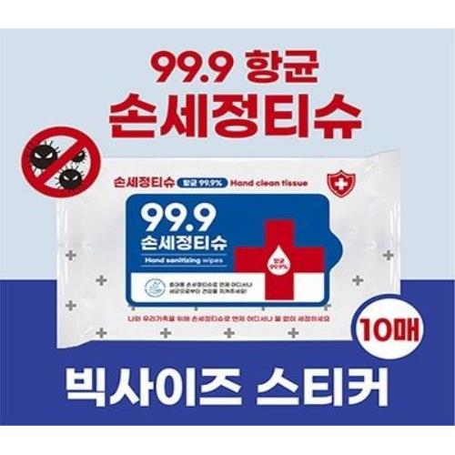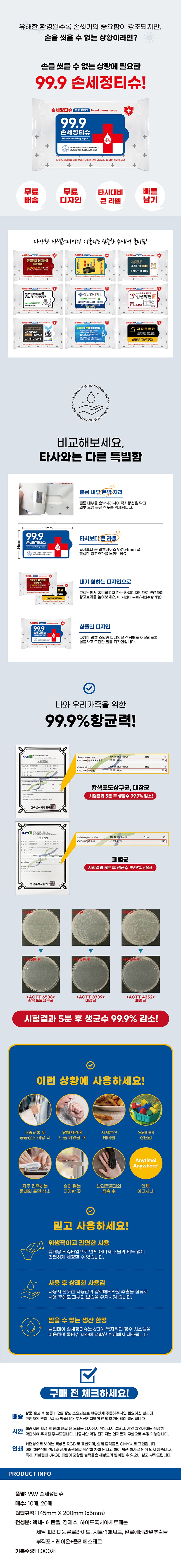 홍보/판촉용_ 클린 99.9% 항균 손세정티슈(스티커인쇄_20매입)