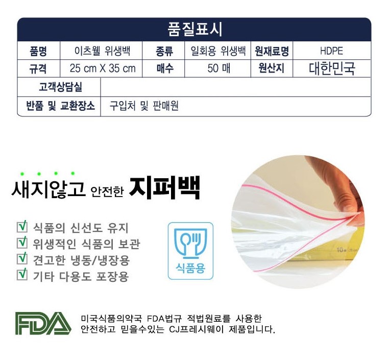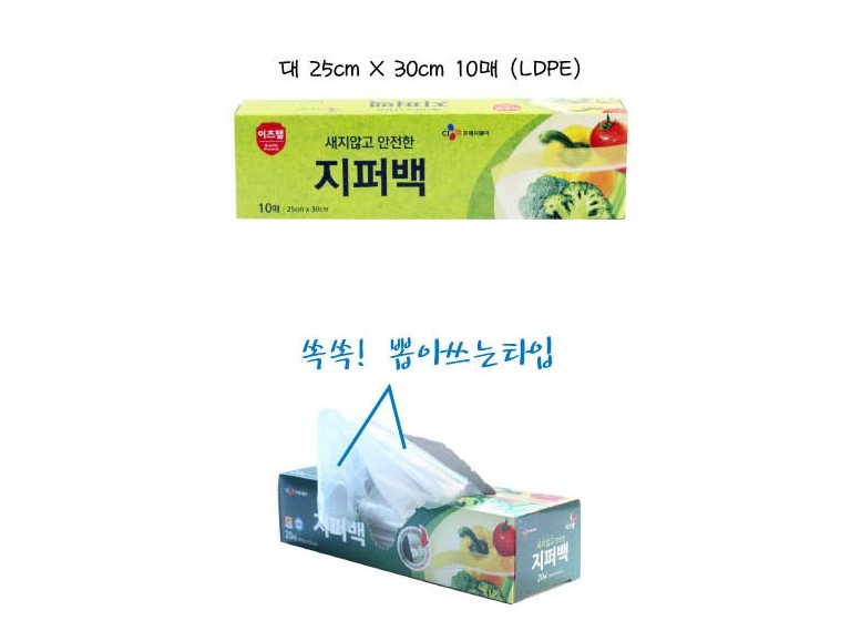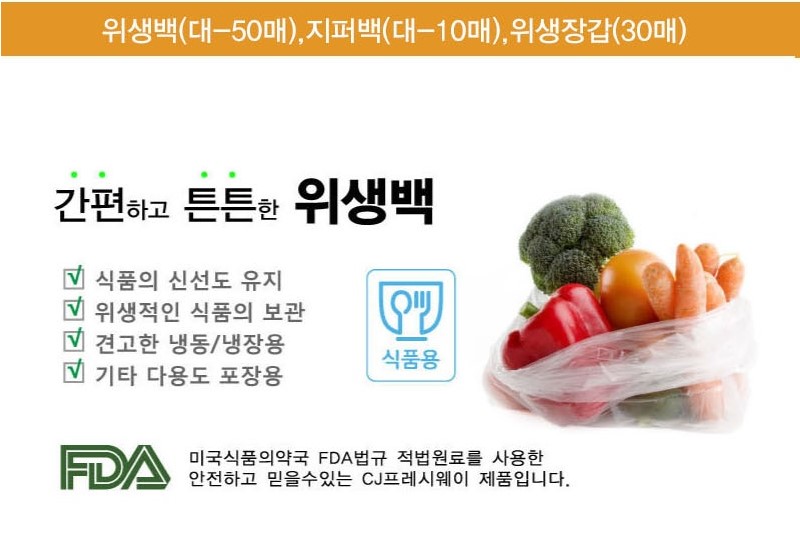 거래조건 : 주방에서 자주 사용하는 지퍼백(대/10매), 위생백(대/50매), 위생장갑(30매) 3종세트입니다.