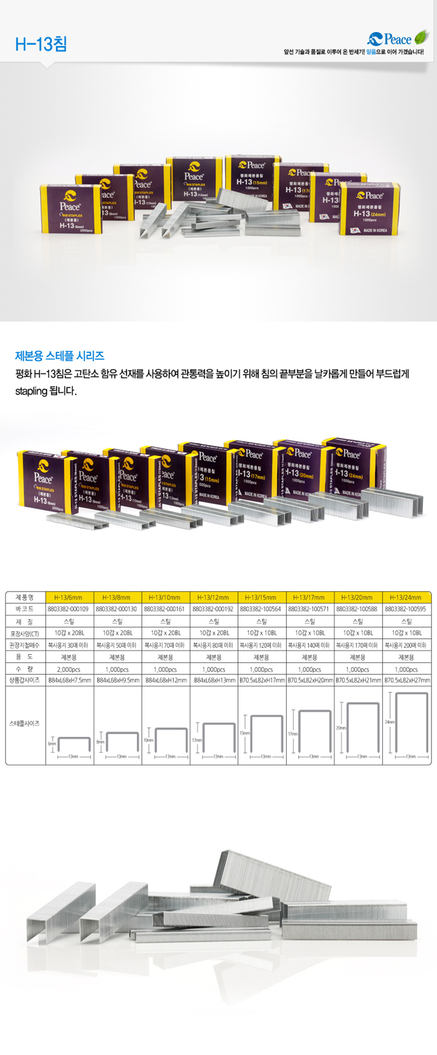 평화_ 제본용 스테플러침H-13 / 6mm)