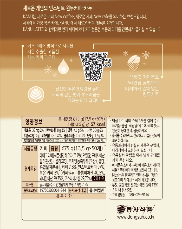 동서 맥심 카누라떼 (13.5g*50T /동서식품)