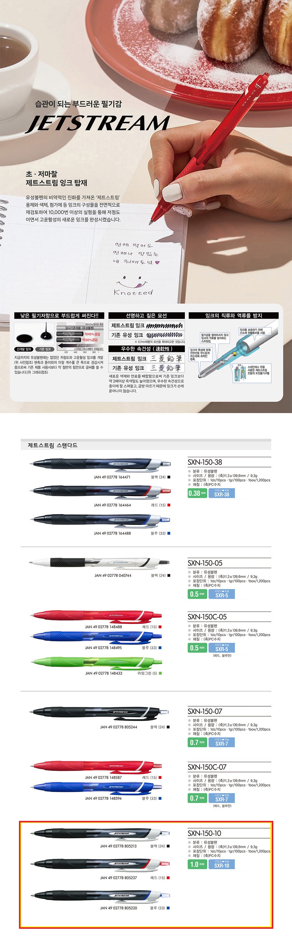 제트스트림볼펜 SXN-150-10 (1.0mm_10자루/타스)