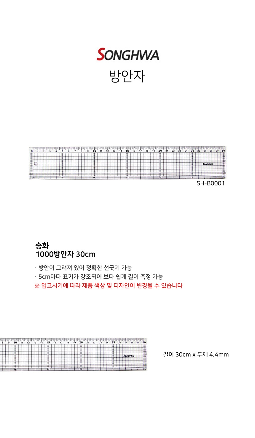 두께 4.4mm, 방안자, 5cm 간격 표기
