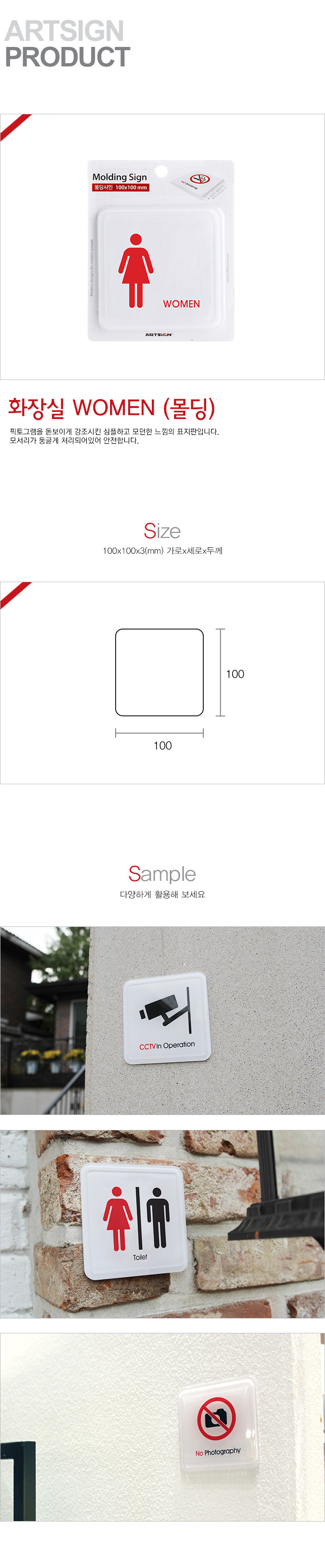 ⓢ[업체별도배송]화장실WOMEN(몰딩/100*100*3T/9604/아트사인)