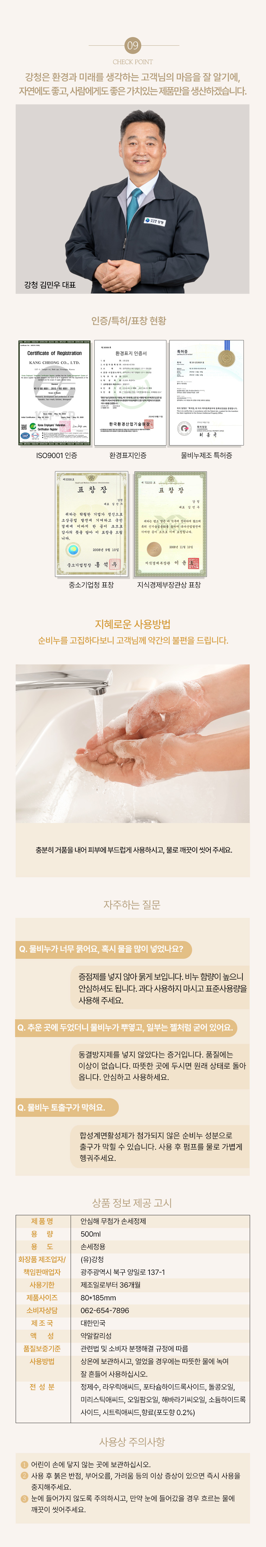 모델명 : 안심해 무첨가 손세정제 (500ml)