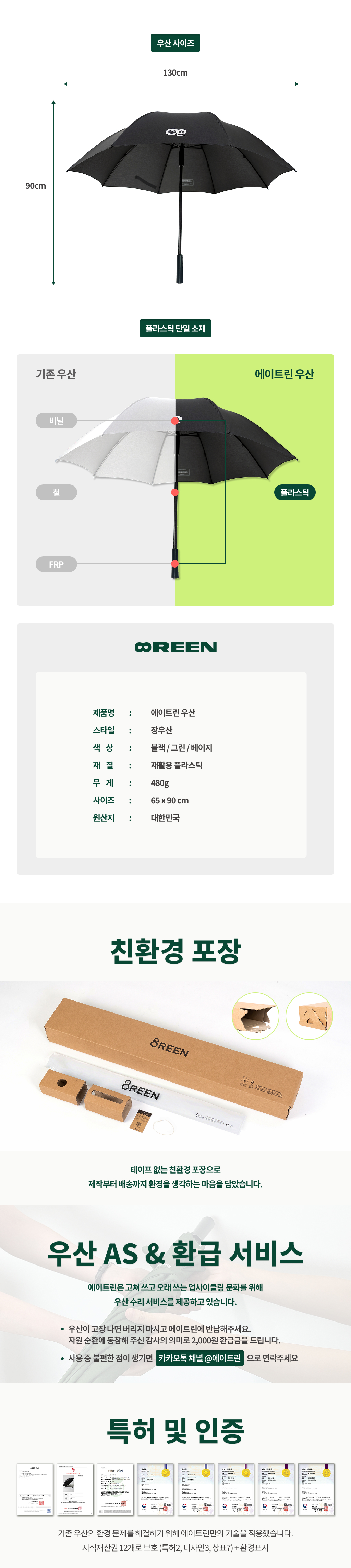 국내 최초 친환경인증을 받은 분리수거가 용이한 업사이클 우산