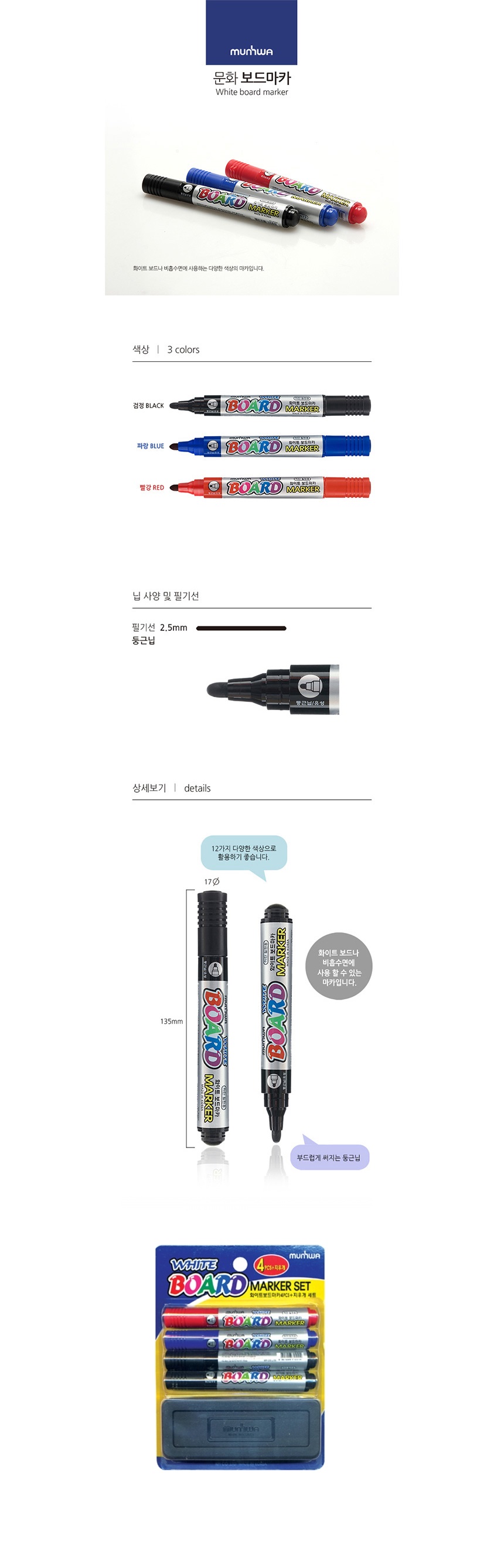 거래조건 : 화이트보드 마카4개(흑2, 적1, 청1)와 지우개 1개 세트상품입니다.